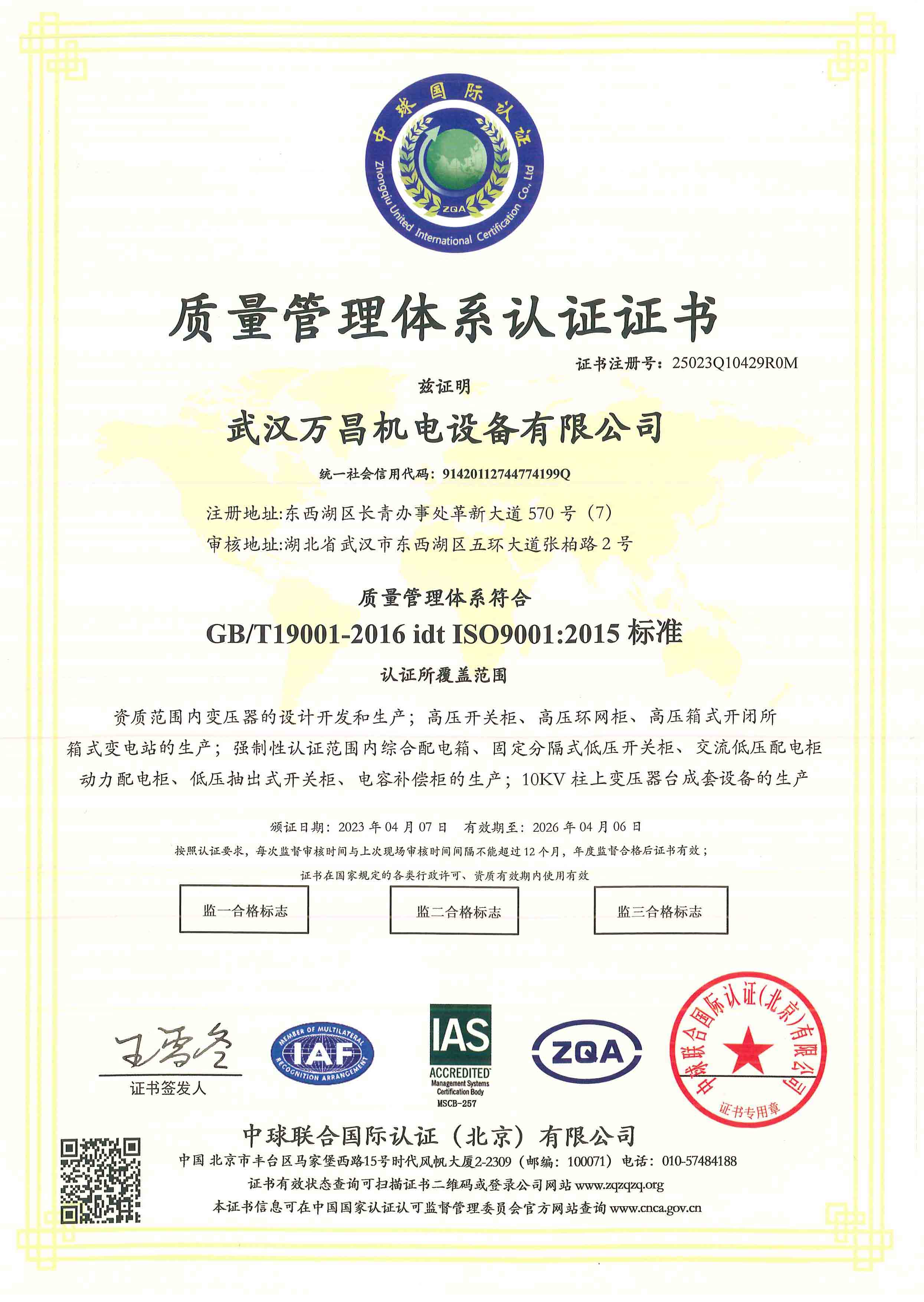 - 質(zhì)量管理體系認(rèn)證證書